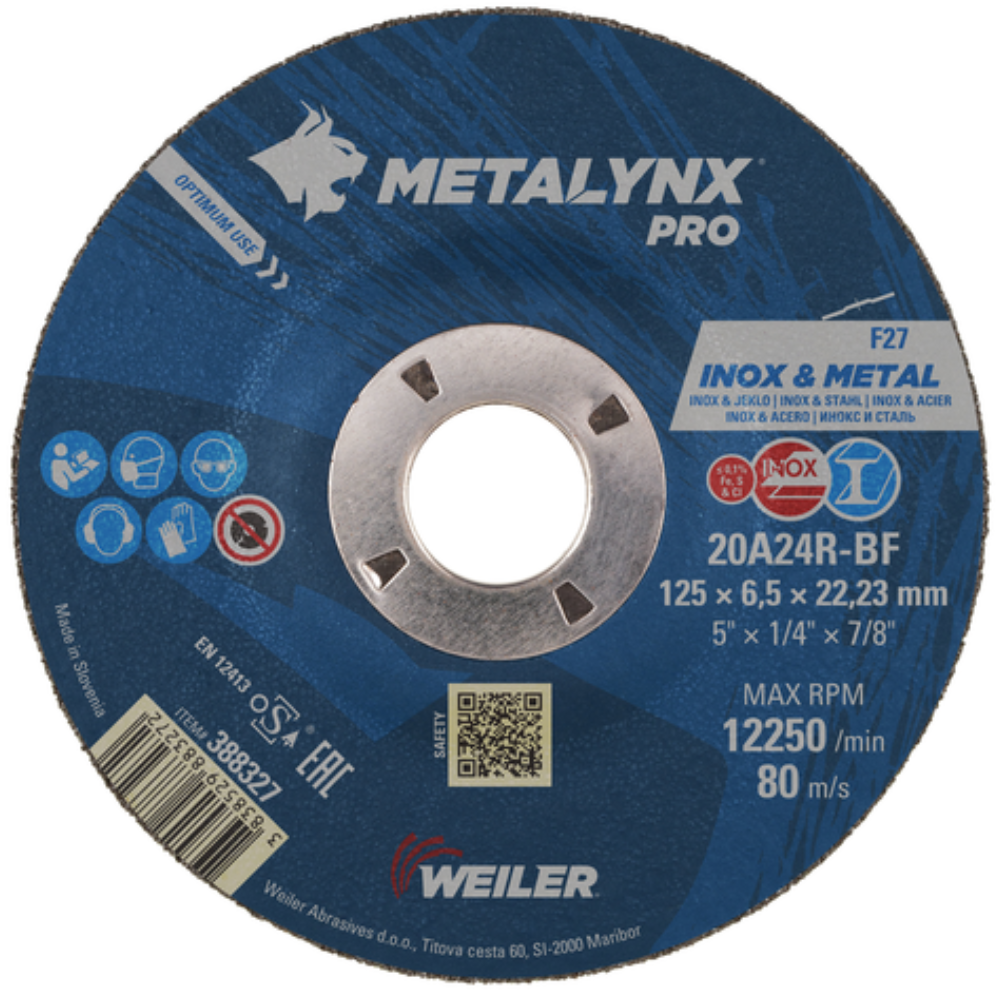 Metalynx PRO INOX 125 x 6.5 x 22.2mm INOX Grinding Disc A36T